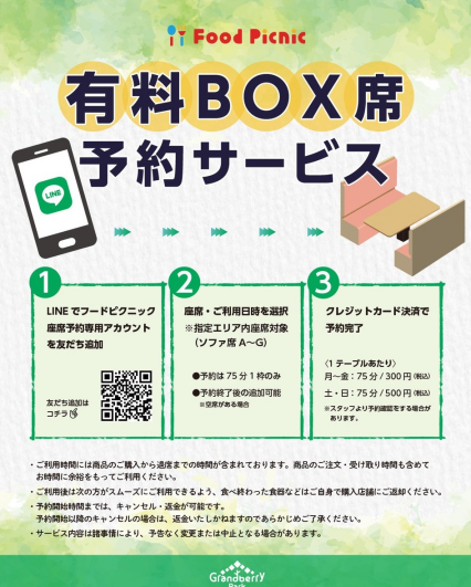 フードピクニックBOX席でLINEを活用した予約・有料席を導入いたしました。