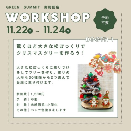 松ぼっくりクリスマスツリー作成のワークショップを開催いたします!