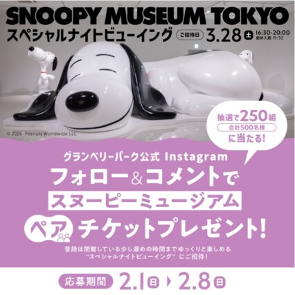 スヌーピーミュージアム 3/28(土)スペシャルナイトビューイングを抽選でプレゼントいたします!🎁✨