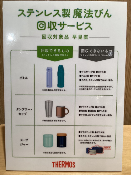 南町田グランベリーパーク店は、ステンレス製魔法瓶の回収サービスをしております✨